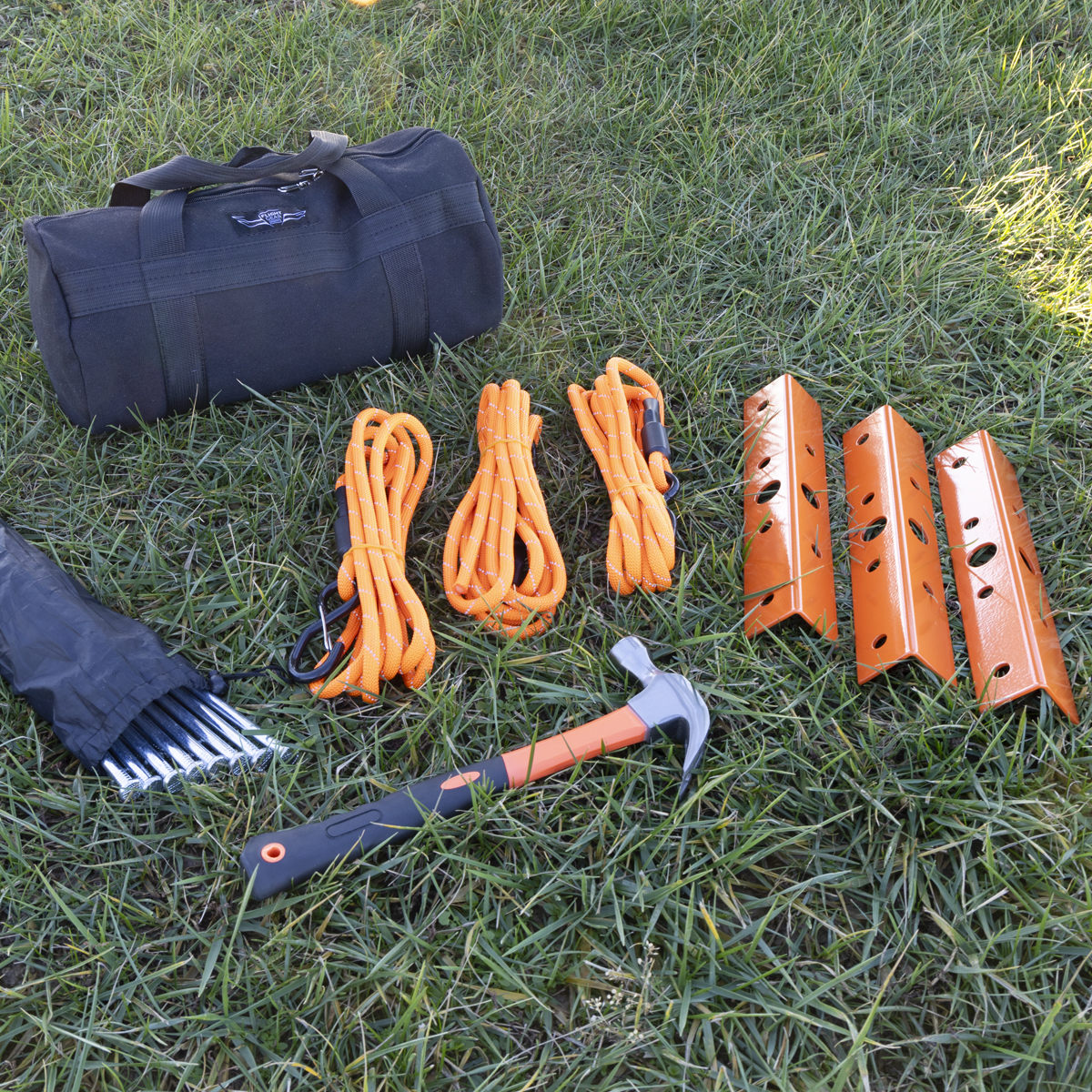 Three 12’ reflective ropes—in high-visibility orange with a rubberized hook for easy connection.