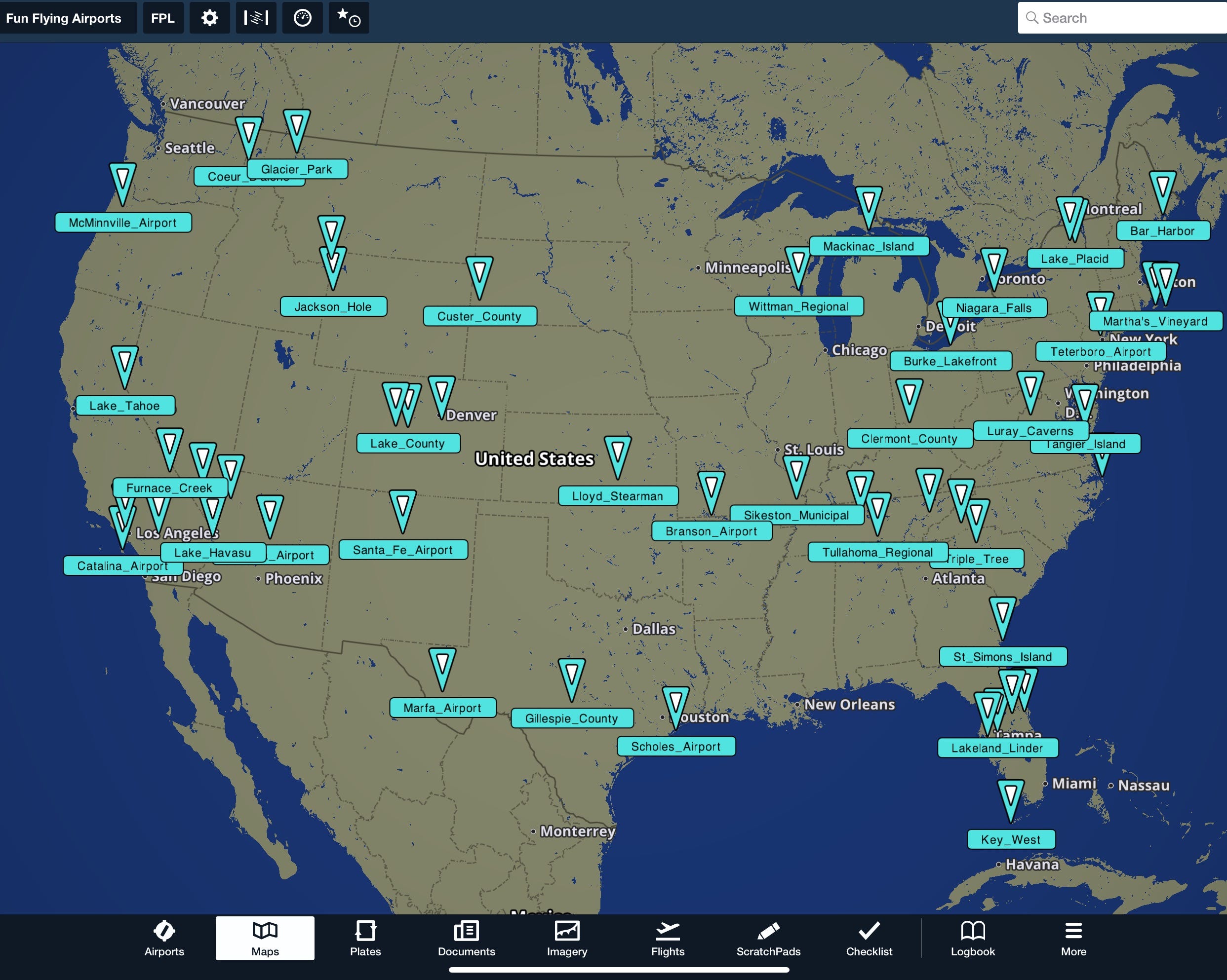 Overlay the 50 fun flying destinations on your ForeFlight map.