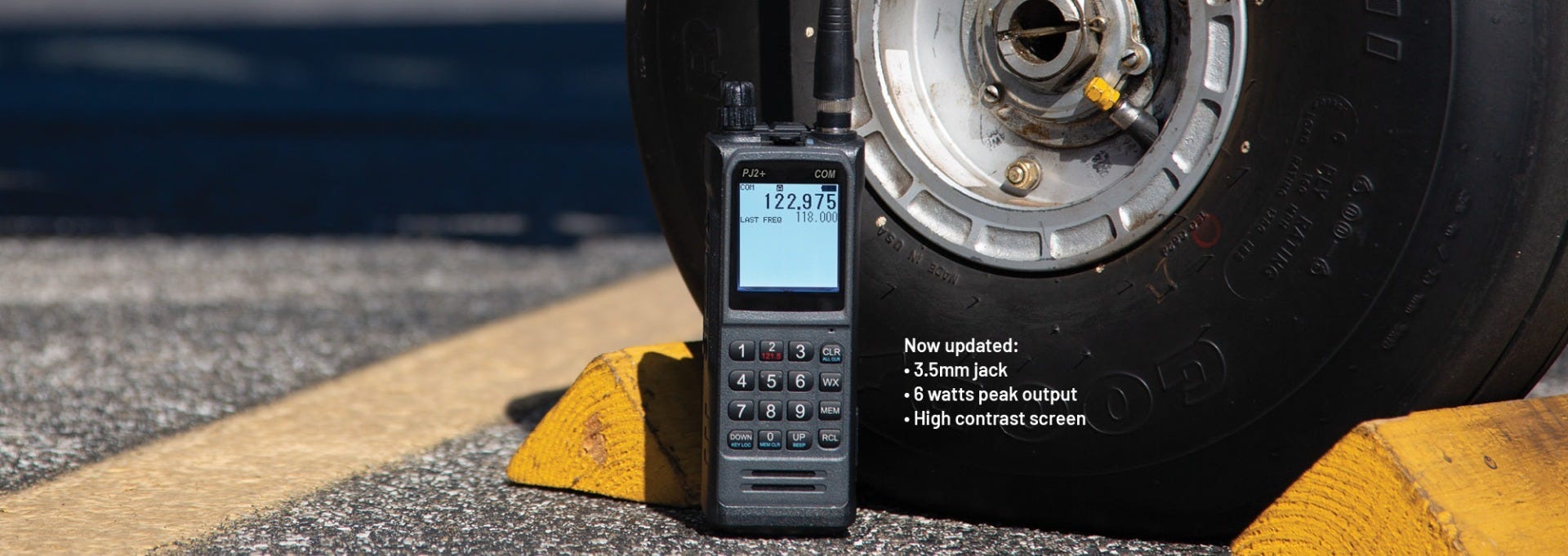 Building on the success of the PJ2 COM radio, the patented PJ2+ continues to set the bar for what a handheld aviation radio can do. In addition to standard GA headsets jacks, the PJ2+ also features a 3.5mm jack to accommodate wired earbuds or a computer headset. An updated, high contrast screen and 6 watts peak transmit power make the PJ2+ the perfect addition to any flight bag.