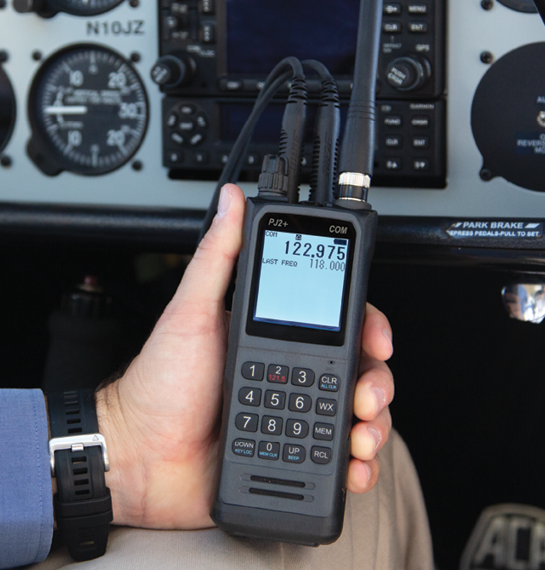The PJ2+ is also designed for one-handed operation, so you can fly with your left hand and communicate with your right. A large push-to-talk button is easily accessed by your thumb, and a handy last frequency button makes it easy to flip back and forth between approach and tower. The large screen is backlit for easy viewing at night, and the oversized keypad is easy to use in turbulence. Everything has been optimized for pilot-friendly operation.